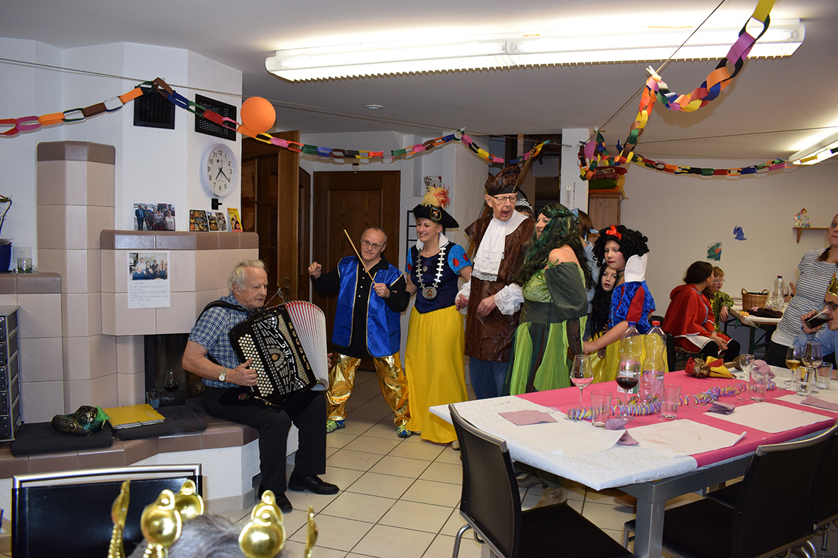 Bei einem grosszügig hergerichteten Apéro stand Plaudern und Diskutieren im Vordergrund. Musiker Walter Sigrist, welcher seit Jahren diesen Anlass mit seiner Handorgel gekonnt begleitet, wurde dabei tatkräftig unterstützt mit Rasseln, Löffeln und Singen der Bewohner. Dirigent Franz schwang unermüdlich den Taktstock und war voll in seinem Element. Das schön dekorierte Haus erfüllte sich mit fröhlicher Musik.